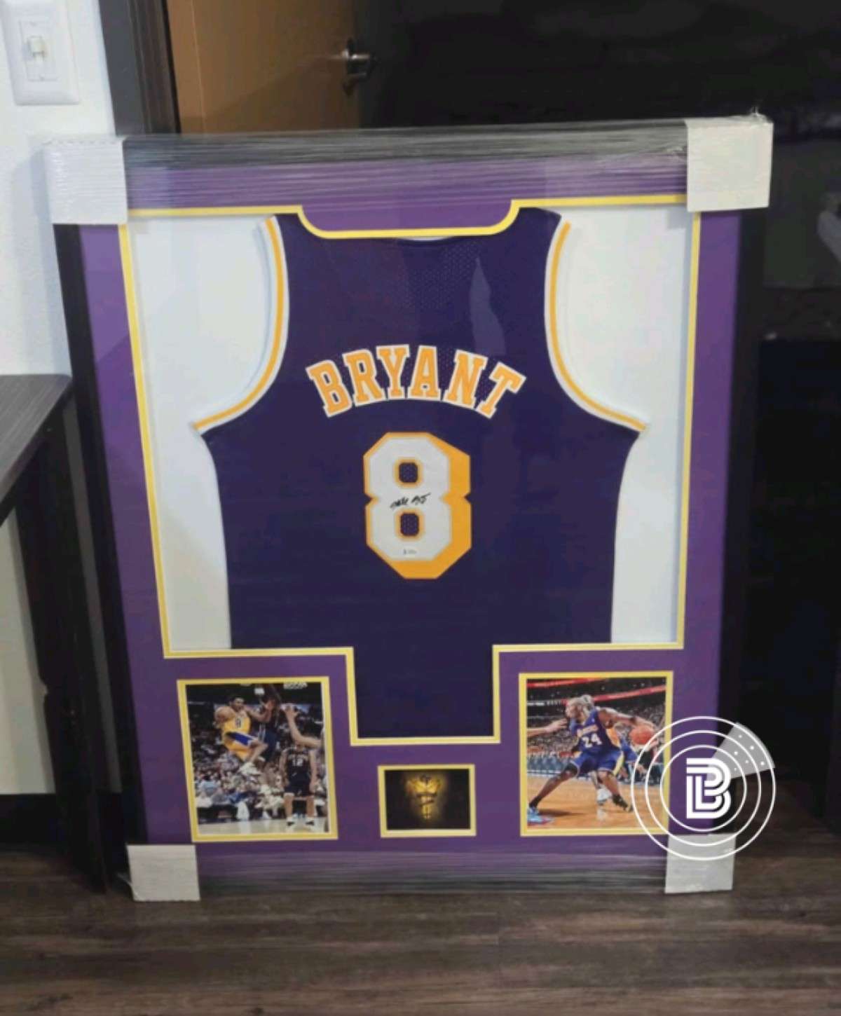 A remarkable piece of sports memorabilia has arrived, featuring the iconic jersey number eight, famously worn by Kobe Bryant. This autographed jersey is professionally framed and accompanied by a Certificate of Authenticity from Beckett. It represents a significant artifact for any basketball enthusiast or collector. Owning this piece is like holding a tangible piece of basketball history, evoking memories of incredible performances. I am thrilled to present this authenticated Kobe Bryant jersey, a true testament to his legacy. #KobeBryant #Lakers #NBA #Memorabilia #SportsCollecting 🏀👑